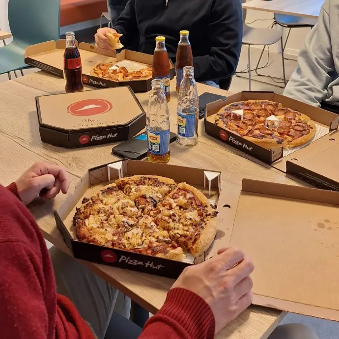 Met een drankje en pizza erbij werd het een gezellige avond vol interessante gesprekken en nieuwe connecties.
